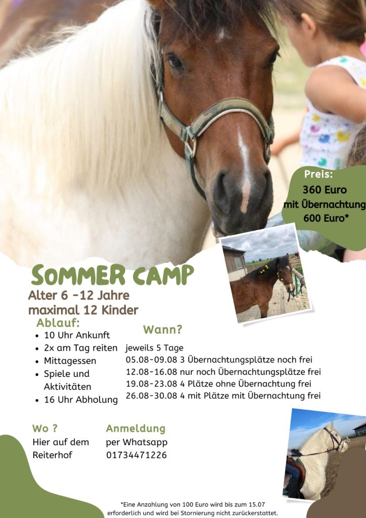 20.07.–24.07.2026 – Ponycamp (Di–Do individueller Unterricht)